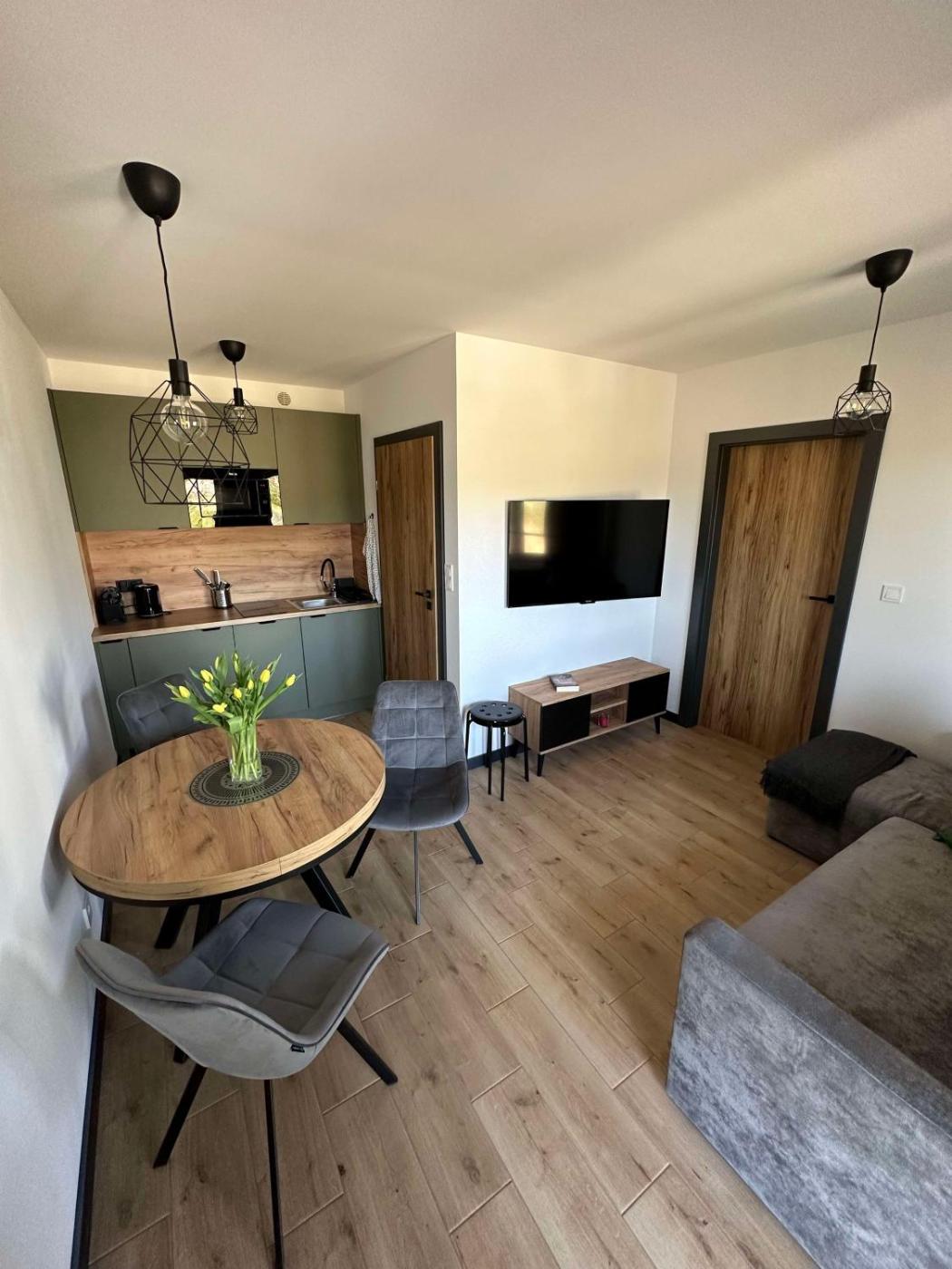 Apartament z 1 sypialnią i ogrodem. Featuring a private entrance, this apartment is comprised of 1 living room, 1 separate bedroom and 1 bathroom with a shower and a hairdryer. Meals can be prepared in the well-fitted kitchenette, which is fitted with a stovetop, a refrigerator, a dishwasher and kitchenware. This apartment features a tea and coffee maker, a seating area, a flat-screen TV and a terrace. The unit offers 3 beds. Apartament - 5 osobowy. Powierzchnia pokoju ok.: 30 mkw.