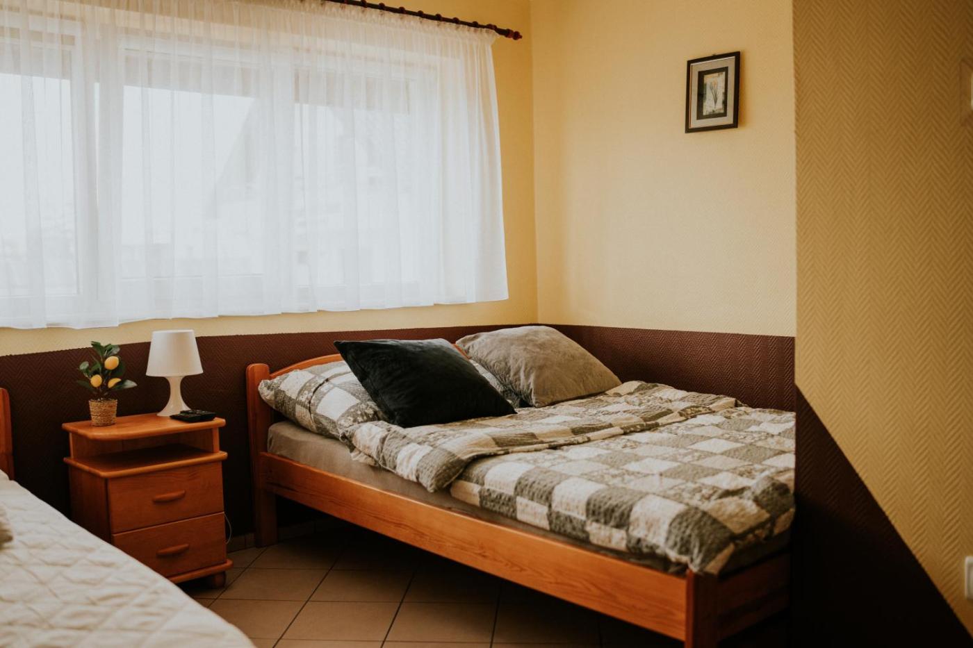 Pokój Trzyosobowy z prywatną łazienką. This triple room features a pool with a view. The triple room provides parquet floors and heating, as well as a private bathroom boasting a shower. Guests will find a refrigerator, kitchenware and a microwave in the kitchenette. The triple room also features a barbecue. The triple room offers a dining area, a wardrobe, an electric kettle, a flat-screen TV, as well as garden views. The unit has 2 beds. Pokój Trzyosobowy - 3 osobowy. Powierzchnia pokoju ok.: 16 mkw. ;