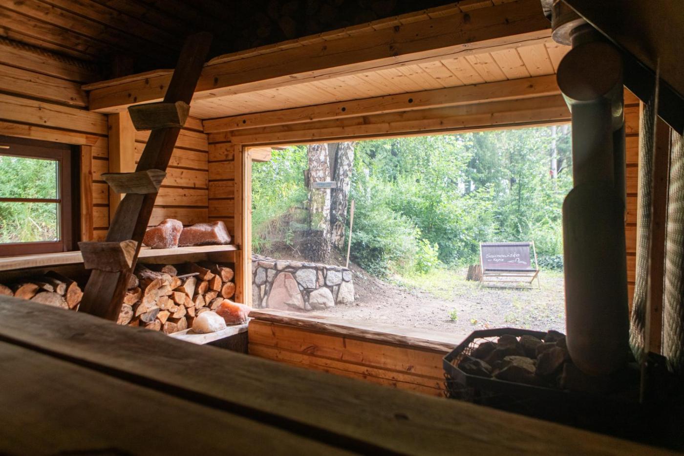 Zaplecze odnowy biologicznej obiektu Ptasi Dom — Saunowisko w Kępie obejmuje saunę i wannę z hydromasażem.